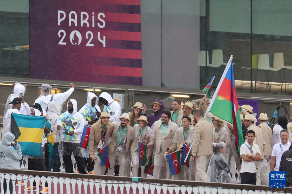7月26日,阿塞拜疆體育代表團成員在開幕式上。新華社記者 王東震 攝