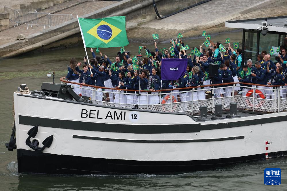 7月26日,巴西體育代表團成員在開幕式上。新華社記者 王東震 攝