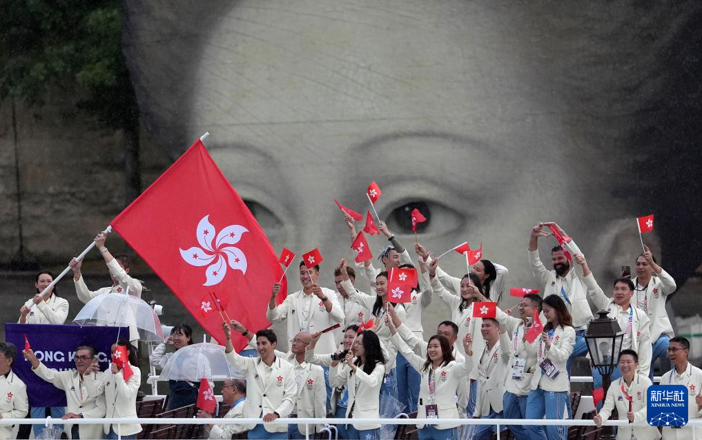 7月26日,中國香港體育代表團在開幕式上。新華社記者 呂小煒 攝