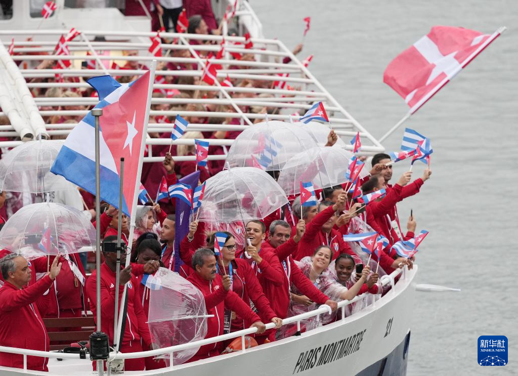7月26日,古巴體育代表團(前)在開幕式上。新華社記者 萬象 攝