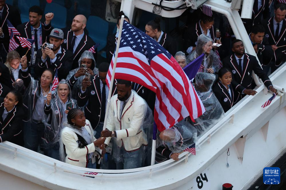 7月26日,美國體育代表團在開幕式上。新華社記者 萬象 攝