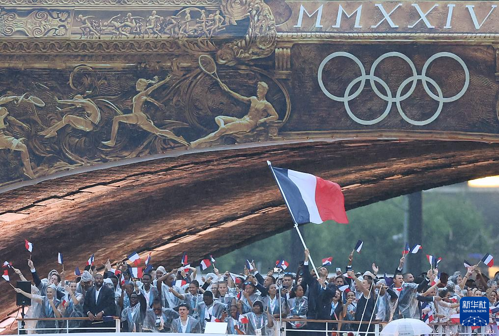 7月26日,法國體育代表團在開幕式上。新華社記者 郭昱 攝