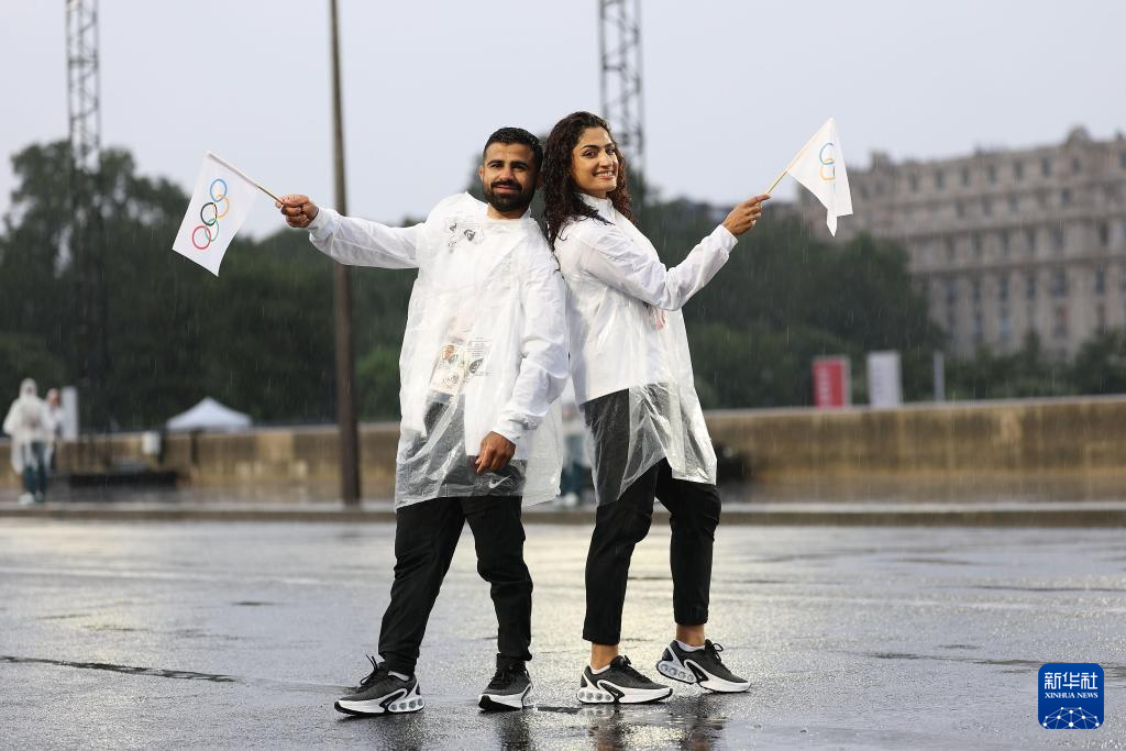 7月26日,觀眾在雨中觀看開幕式。新華社發(fā)(POOL照片/克洛達赫·基爾科因)