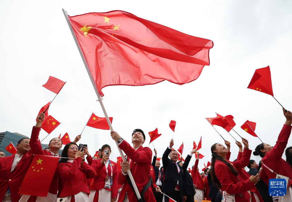 7月26日,中國體育代表團在開幕式上。新華社記者 郭昱 攝