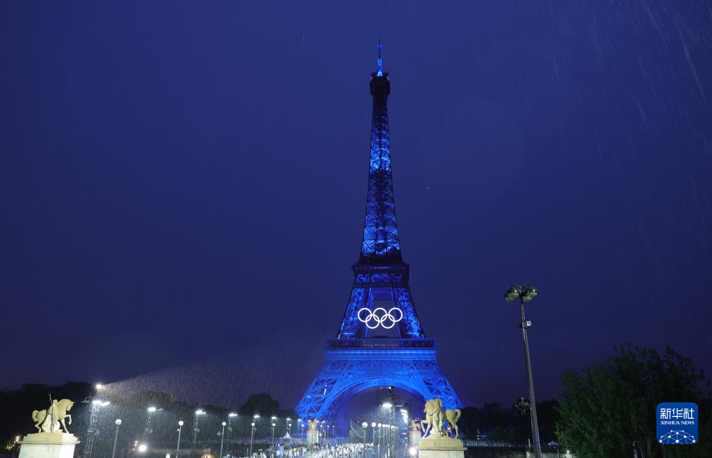 開幕式上拍攝的埃菲爾鐵塔(7月26日攝)。新華社記者 許暢 攝