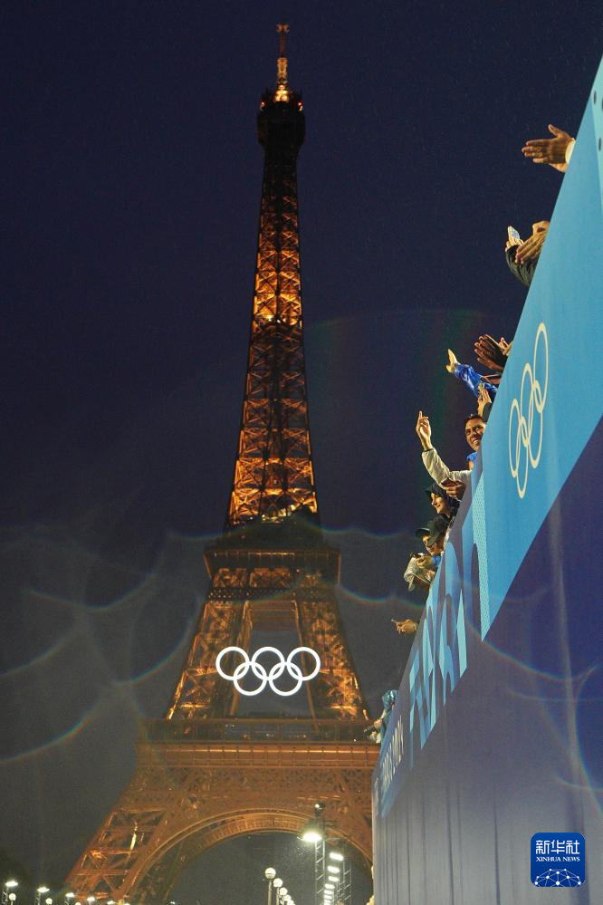 俯瞰開幕式上的埃菲爾鐵塔(7月26日攝)。新華社發(fā)(POOL照片/利昂內爾·博納旺蒂爾)pagebreak