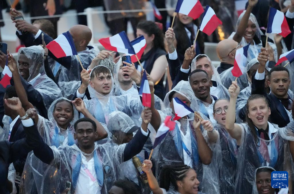 7月26日,法國體育代表團在開幕式上。新華社記者 李鋼 攝pagebreak