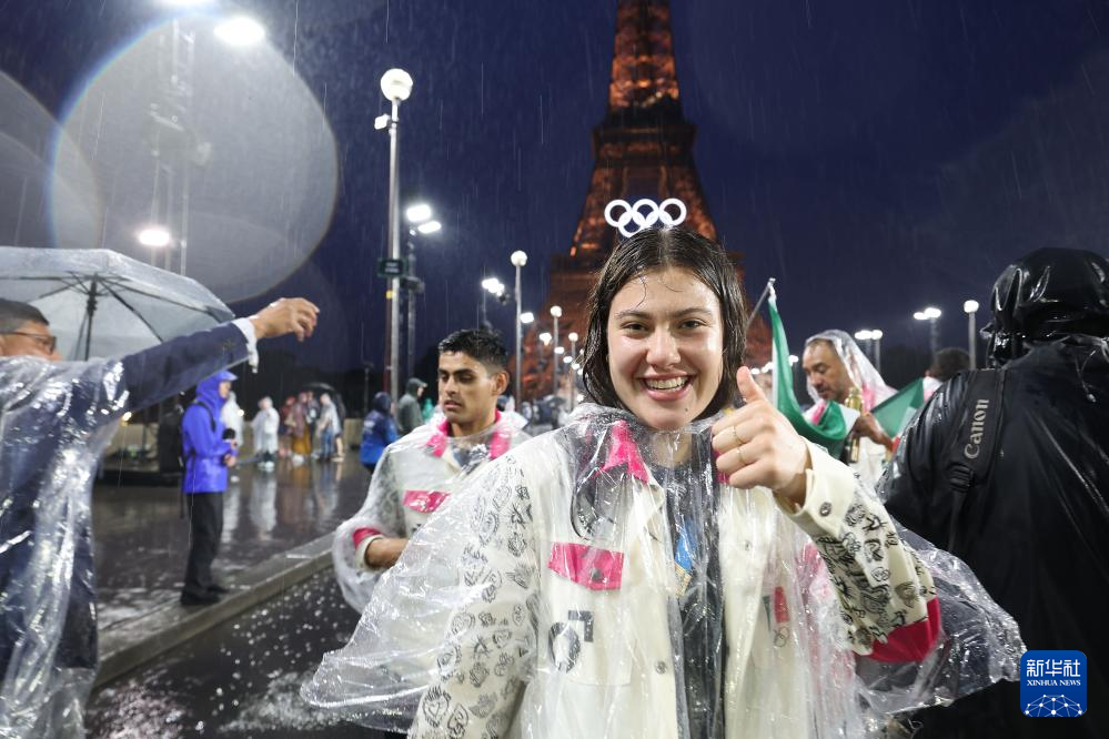 7月26日,埃及體育代表團成員在埃菲爾鐵塔前。新華社記者 李明 攝