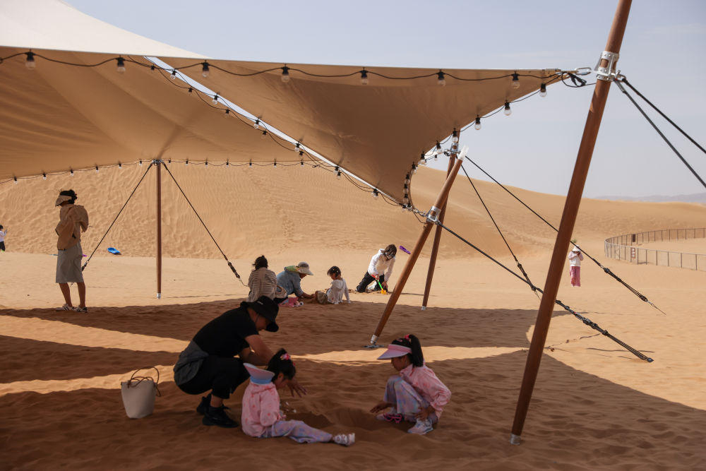 7月26日,游客在寧夏中衛(wèi)市沙坡頭景區(qū)游玩。新華社記者 呂帥 攝