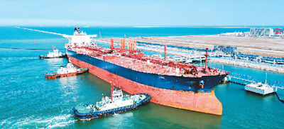 東營海關(guān)數(shù)據(jù)顯示,今年上半年,山東省東營市東營港進出境貨運量807.3萬噸、貨值344.7億元,同比分別增長492.2%、556.5%。圖為7月30日,東營港10萬噸級碼頭,進口貨輪經(jīng)海關(guān)監(jiān)管后,駛出碼頭。