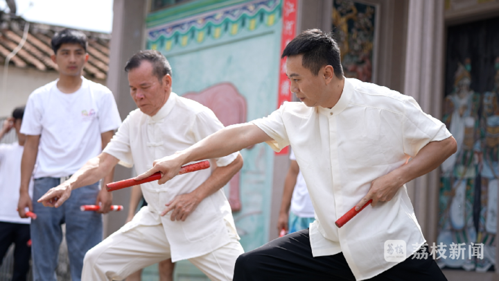 和村里許多家庭一樣,對英歌的喜愛在陳揚波家里代代相傳,他的爺爺陳才斗曾跟隨廣東省歌舞團,參加了1953年在北京的演出?!皠e人追星,我就追英歌。”陳揚波從小便癡迷于英歌激昂的節(jié)奏和矯健的身姿,夢想著有一天能成為英歌隊的一員。他迄今記得,兒時的大年初一,每當(dāng)英歌鼓點響起,自己便會滿心歡喜地一路追隨在隊伍之后,縱情吶喊。到了寒暑假,他則會約上小伙伴,一起反復(fù)播放著VCD中的動作,時而慢放,時而暫停,接著把掃帚折成兩段,以柄為槌,歡然起舞。