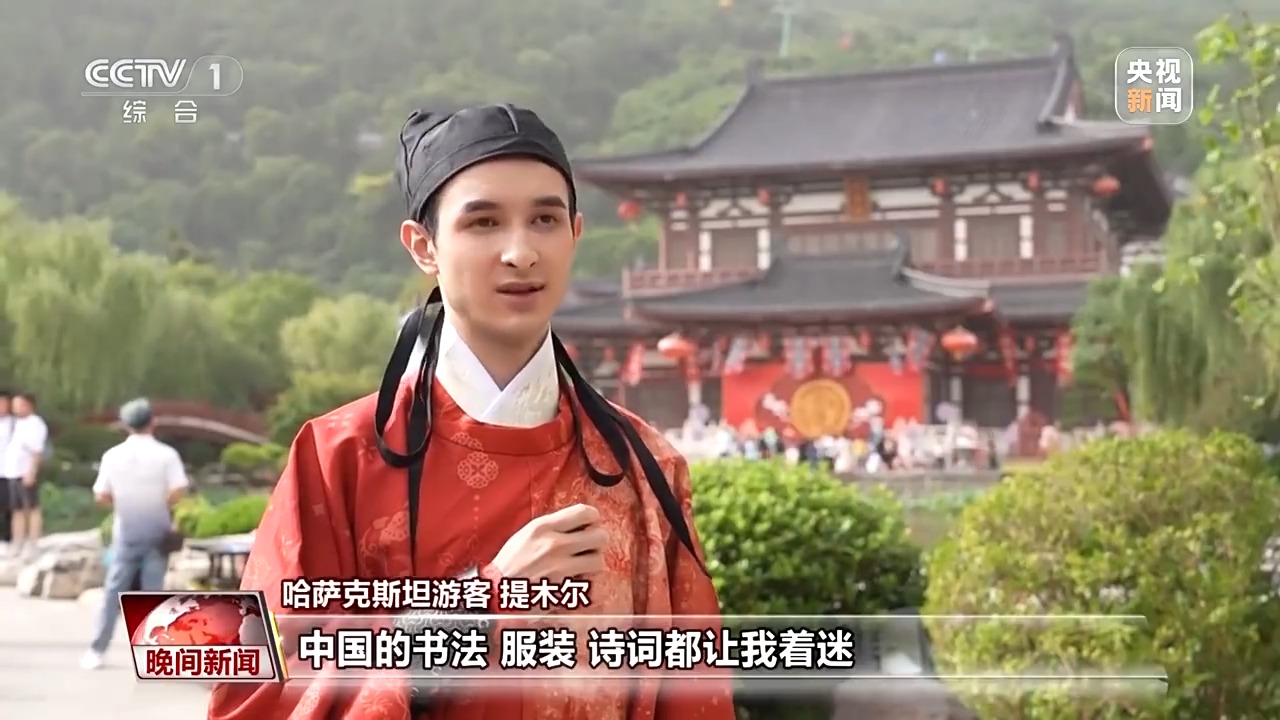 哈薩克斯坦游客提木爾:中國(guó)的書法、服裝、詩詞都讓我著迷,今天穿著這身中國(guó)的傳統(tǒng)服飾,體驗(yàn)中國(guó)唐代的宮廷婚禮,這個(gè)經(jīng)歷真的太獨(dú)特,太珍貴了。