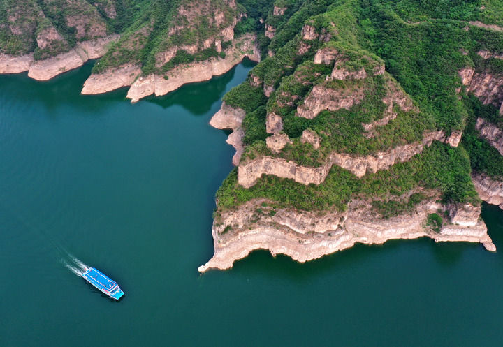 在河南省濟源市拍攝的黃河三峽景色(2024年5月28日攝,無人機照片)。