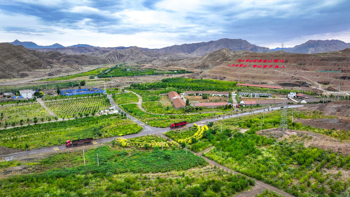 寧夏石嘴山市石炭井大磴溝生態(tài)修復(fù)示范區(qū)(2024年8月6日攝,無(wú)人機(jī)照片)。
