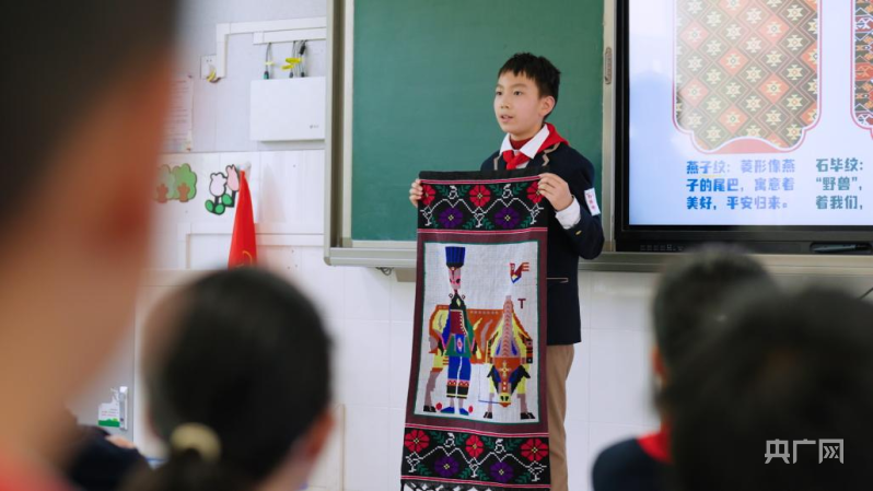 周彥博的家鄉(xiāng)位于重慶市酉陽(yáng)土家族苗族自治縣。逢年過(guò)節(jié),他總會(huì)跟隨爸爸媽媽回鄉(xiāng)看望親人。不同民族、不同文化碰撞的魅力讓周彥博深受感觸?;氐綄W(xué)校,他利用課余時(shí)間,身著特色家鄉(xiāng)服飾,與同學(xué)分享自己回鄉(xiāng)的見(jiàn)聞,講述民族團(tuán)結(jié)的故事。
