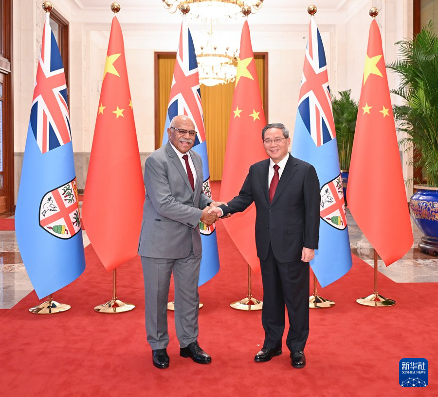 國(guó)務(wù)院總理李強(qiáng)8月18日下午在北京人民大會(huì)堂同來華進(jìn)行正式訪問的斐濟(jì)總理蘭布卡舉行會(huì)談。