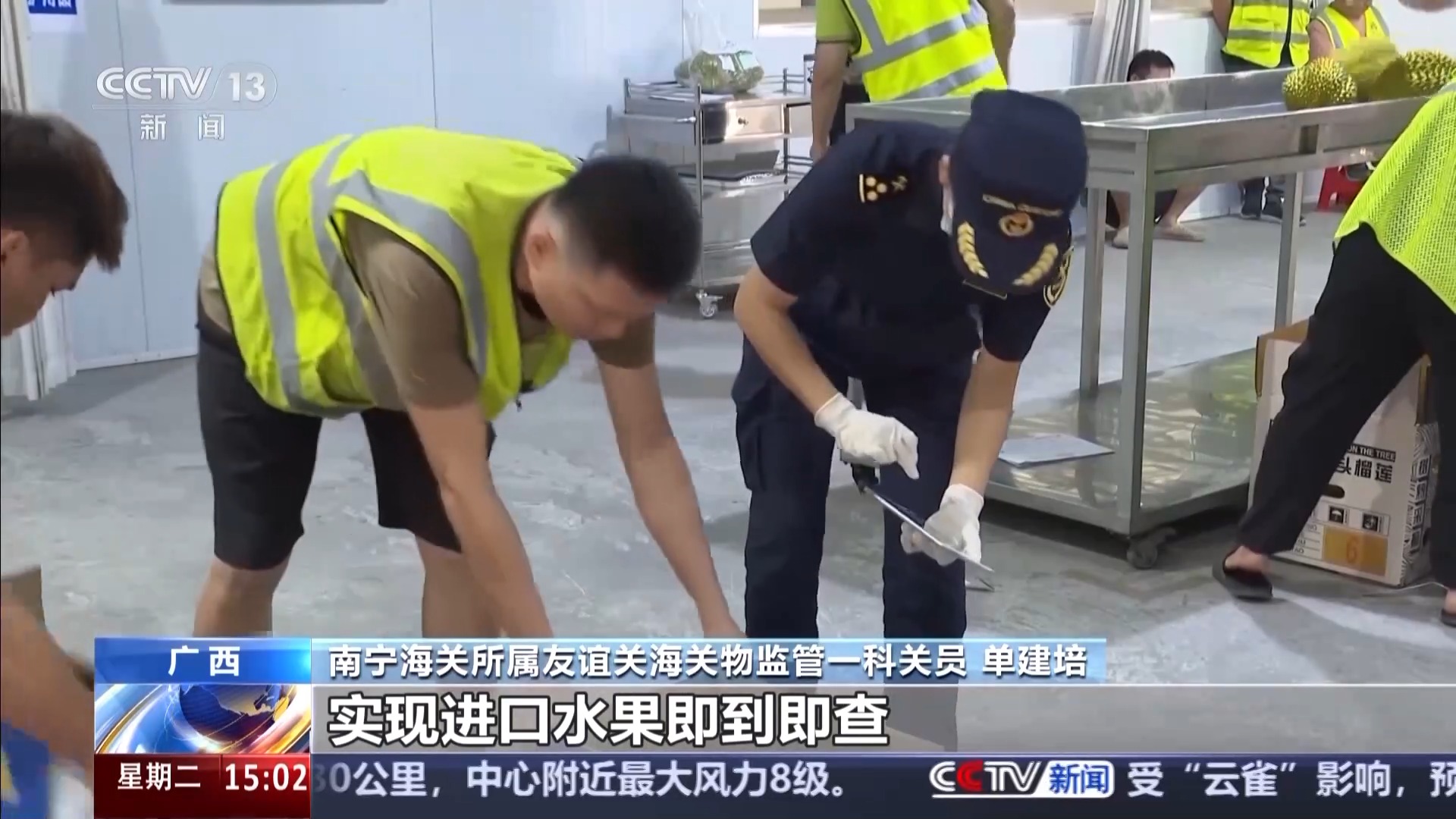 南寧海關(guān)所屬友誼關(guān)海關(guān)物監(jiān)管一科關(guān)員 單建培:友誼關(guān)口岸是廣西最大的水果進(jìn)口口岸,系統(tǒng)能自動識別查驗車位空閑狀態(tài),自動通知車輛進(jìn)場排隊,壓縮貨物等待時間20%,查驗車位周轉(zhuǎn)率提升35%,實現(xiàn)進(jìn)口水果即到即查。