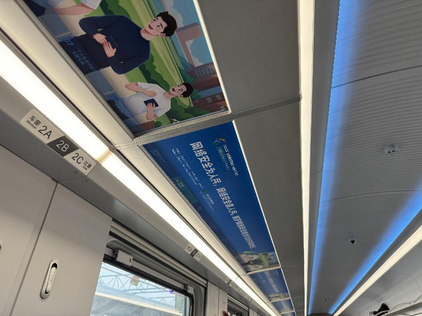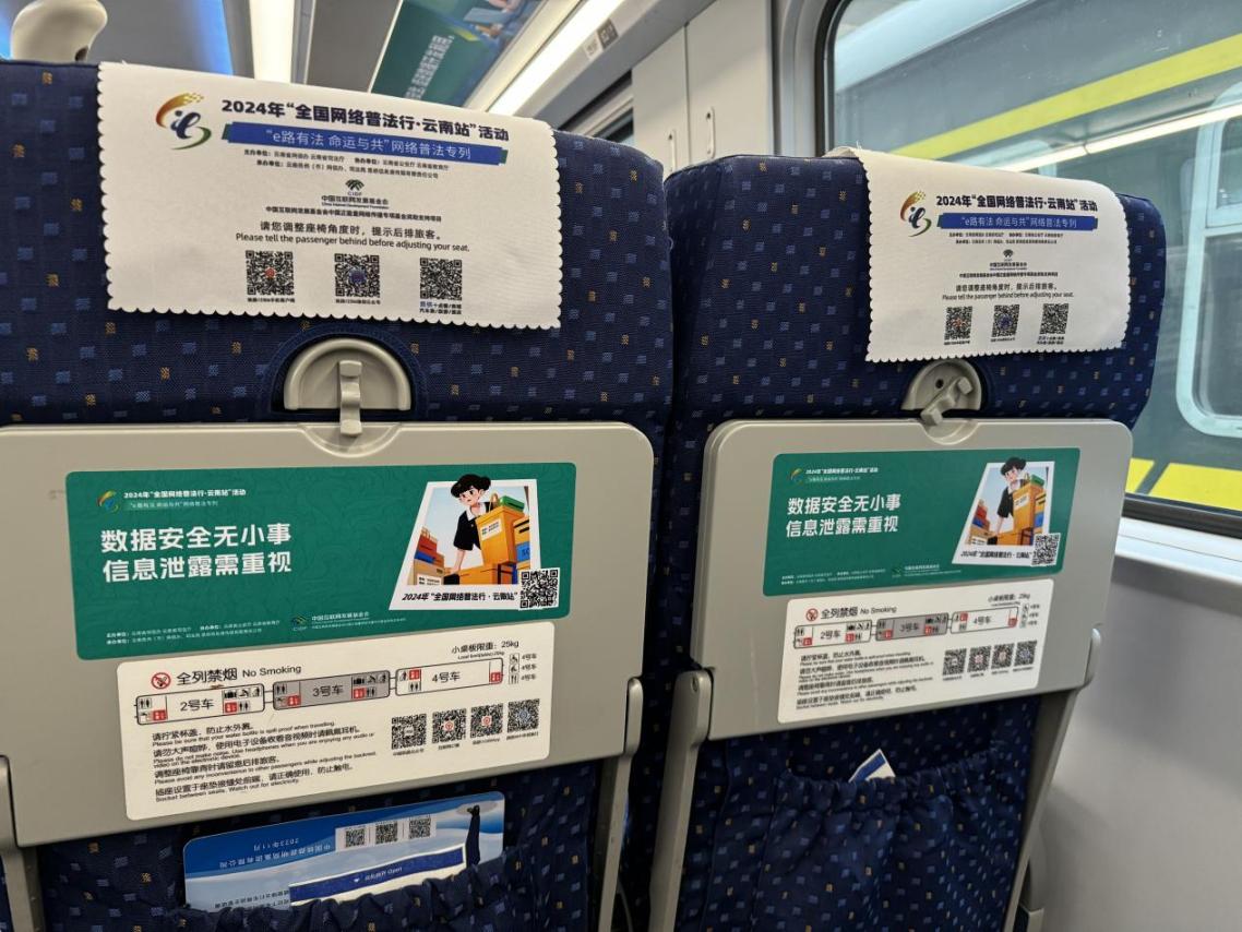 據(jù)介紹,專列的8個(gè)主題車廂分別以“中國網(wǎng)絡(luò)法治三十年”“網(wǎng)絡(luò)安全”“數(shù)據(jù)安全”“未成年人網(wǎng)絡(luò)保護(hù)”“數(shù)據(jù)出境之旅”“反網(wǎng)暴凈網(wǎng)行動”“個(gè)人信息守護(hù)”以及“網(wǎng)絡(luò)空間命運(yùn)共同體”命名,通過鏡框海報(bào)、玻璃貼、小桌板貼、行李架彩貼、頭枕片、車內(nèi)LED信息屏等形式多樣的載體,全面展示網(wǎng)絡(luò)法治30年成就、網(wǎng)絡(luò)空間命運(yùn)共同體主張。讓乘客們在享受舒適旅途的同時(shí),也能輕松學(xué)習(xí)到實(shí)用的法律信息。