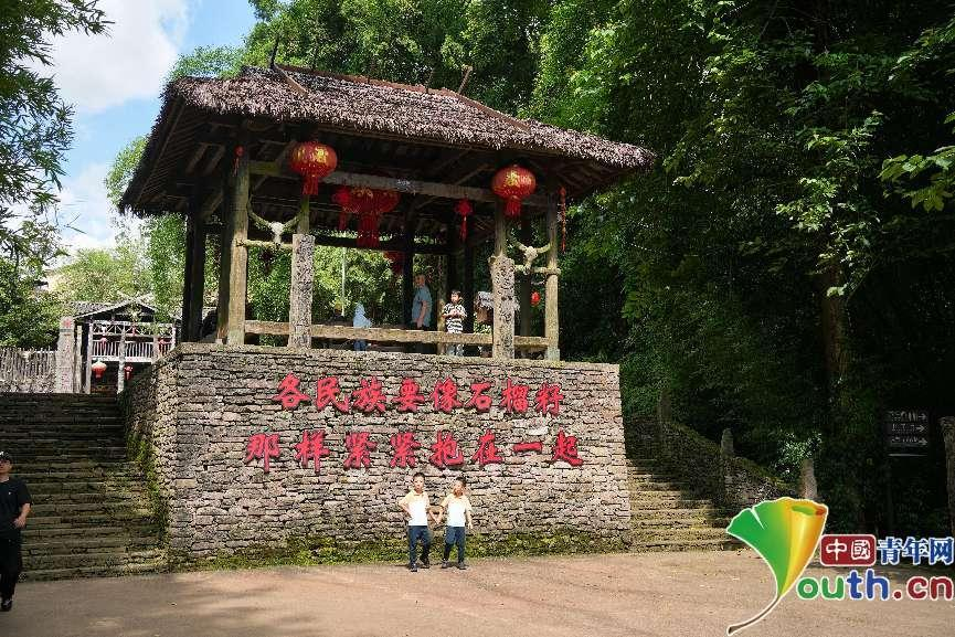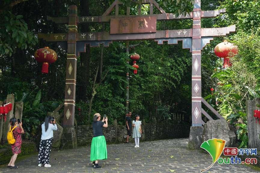 “中寨”寨門前,不少游客在打卡。中國青年網(wǎng)見習記者 曹偉 攝