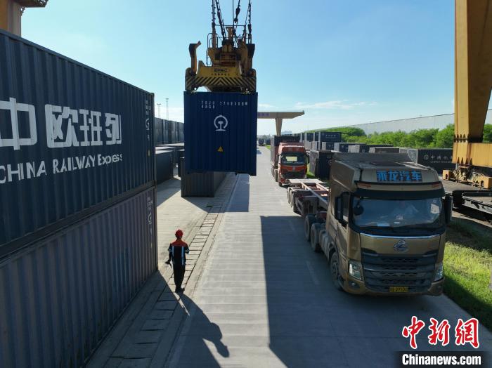 8月26日,廣西南寧國際鐵路港內(nèi),鐵路職工頂著下午的烈日,正在為發(fā)往越南的貨運(yùn)班列裝卸貨物。該鐵路港是廣西始發(fā)中越班列的核心場站。國鐵南寧局提供的信息顯示,今年前7個月,廣西始發(fā)中越班列累計(jì)發(fā)運(yùn)貨物6850標(biāo)箱,同比增長16倍;其中7月份發(fā)運(yùn)1922標(biāo)箱,超過今年一季度發(fā)運(yùn)量總和,為今年以來第三次刷新單月發(fā)運(yùn)量紀(jì)錄。圖為集裝箱擺滿場站,等待裝車。王以照 攝