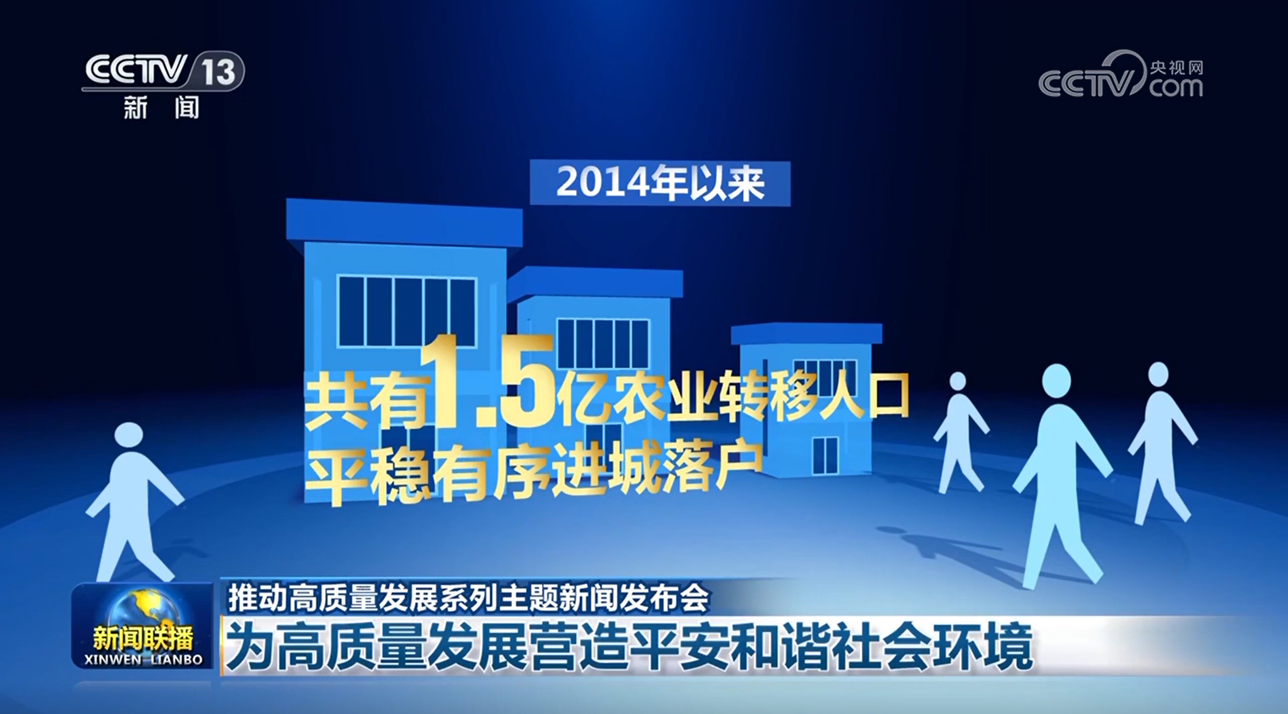 近年來,公安機關(guān)有序推進農(nóng)業(yè)轉(zhuǎn)移人口市民化。2014年以來,共有1.5億農(nóng)業(yè)轉(zhuǎn)移人口平穩(wěn)有序進城落戶,全國戶籍人口城鎮(zhèn)化率由2014年的35.9%提高到2023年的48.3%。