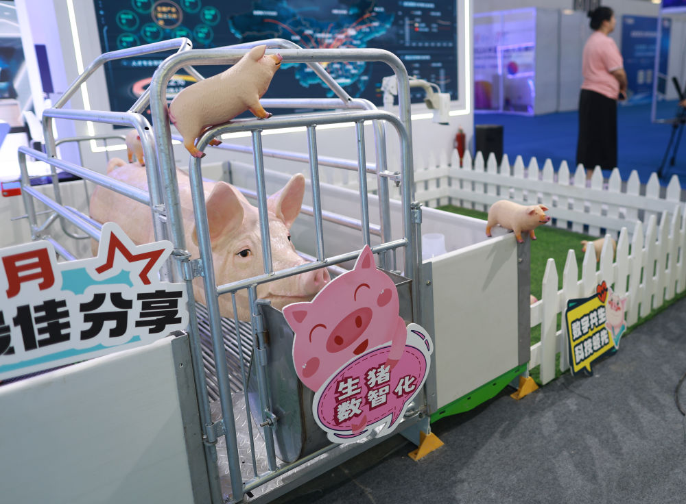 8月28日,觀展者在2024中國國際大數(shù)據(jù)產(chǎn)業(yè)博覽會現(xiàn)場參觀智能生豬全產(chǎn)業(yè)鏈數(shù)智化服務(wù)總平臺模型。