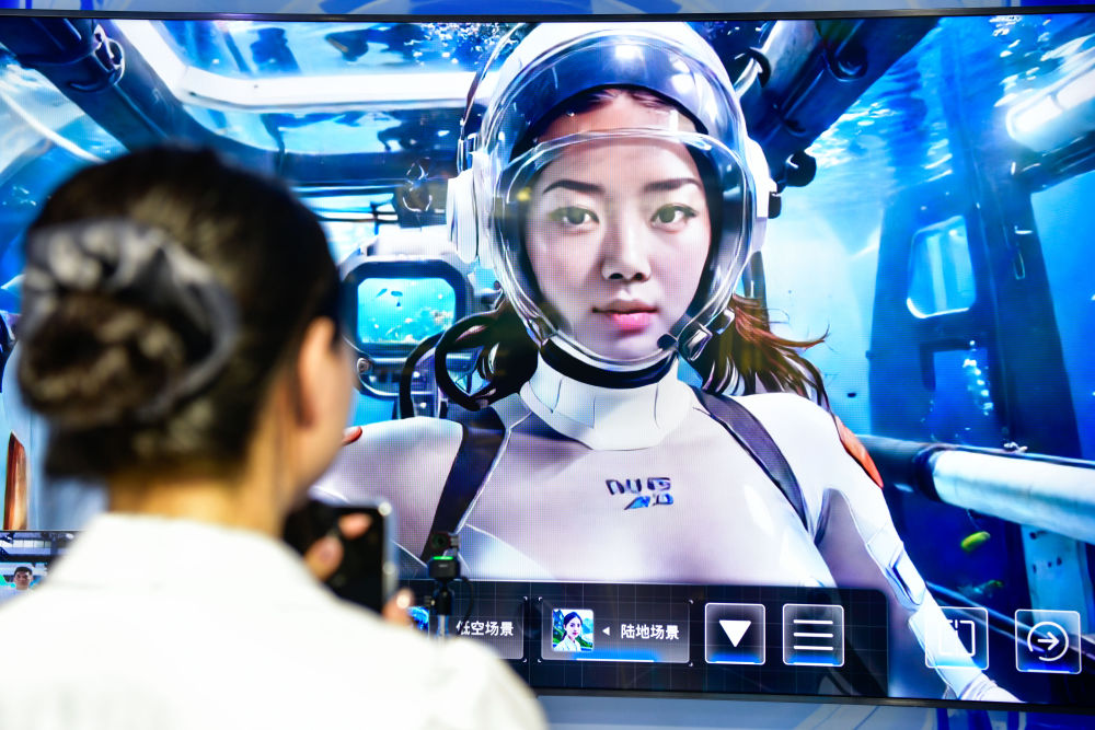 8月28日,參會人員在數(shù)博會上體驗(yàn)AIGC智影奇境。