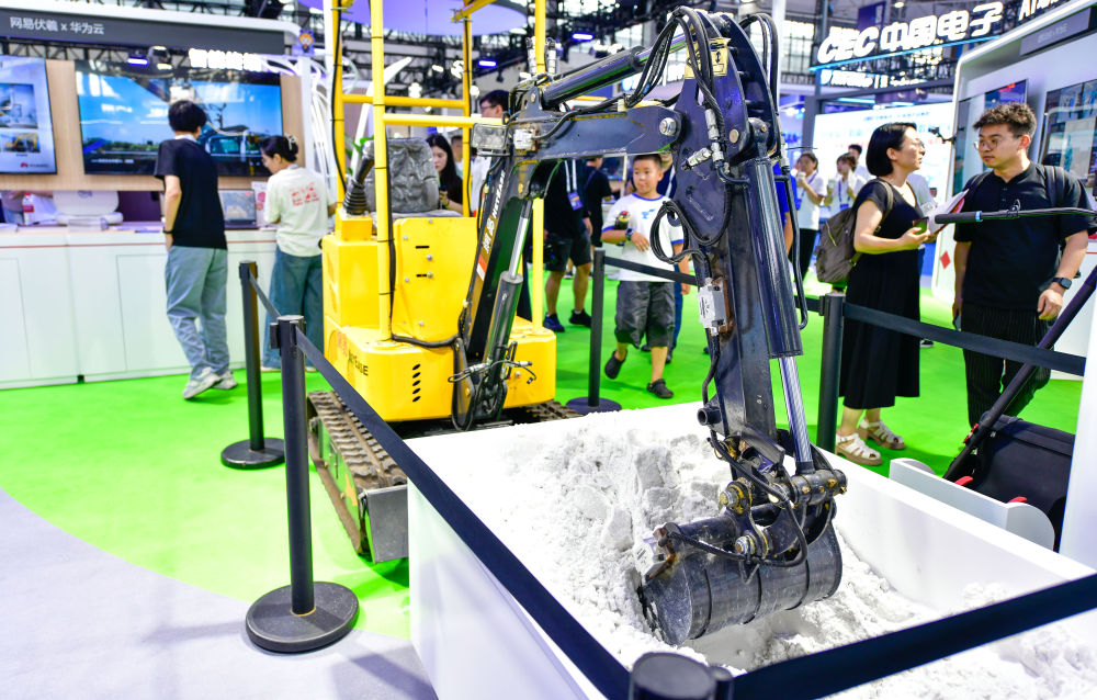 8月28日拍攝的在數(shù)博會上展出的一款智能機(jī)械設(shè)備。