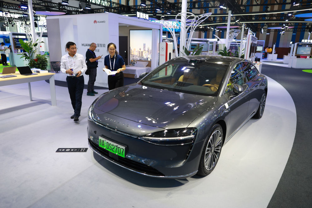 8月28日,觀展者在2024中國國際大數(shù)據(jù)產(chǎn)業(yè)博覽會現(xiàn)場參觀智能汽車。
