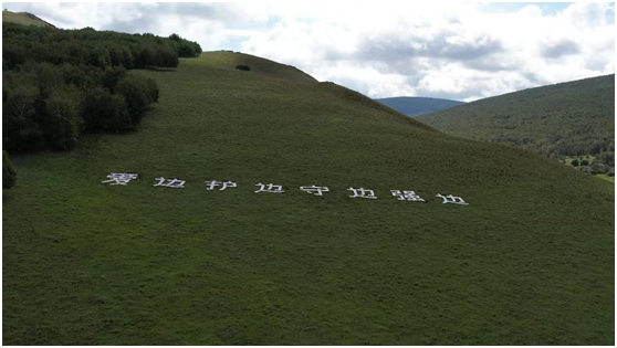 1984年7月,王玉發(fā)在阿爾山林業(yè)局林場工作期間,光榮地加入了中國共產(chǎn)黨。今年,王玉發(fā)迎來了加入中國共產(chǎn)黨的第40個年頭。為了慶祝這一特殊時刻,王玉發(fā)用1000余塊石磚堆砌出“愛民 護(hù)邊守邊 強(qiáng)邊”八個大字,成為山坡上一道壯觀的風(fēng)景線。