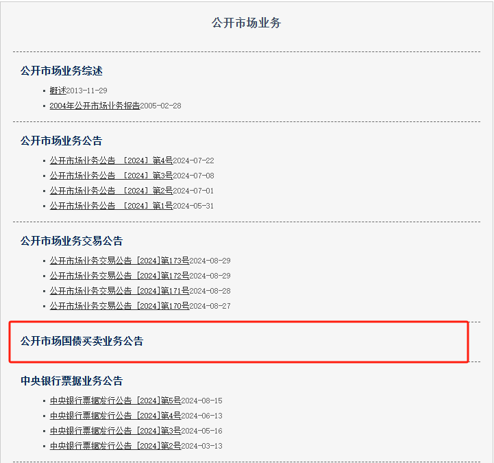 8月28日,中國人民銀行官網(wǎng)“公開市場業(yè)務(wù)”專題頁面上線“公開市場國債買賣業(yè)務(wù)公告”欄目。此次在官網(wǎng)欄目更新,顯示央行已為公開市場國債買賣業(yè)務(wù)做好準(zhǔn)備,再次釋放其將在公開市場開展國債買賣操作的信號。