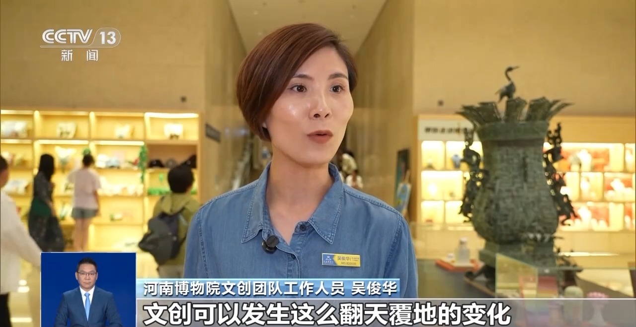 河南博物院文創(chuàng)團(tuán)隊工作人員 吳俊華:大家來參觀博物館從被動灌輸,轉(zhuǎn)化為主動探索、去感受考古挖掘的樂趣以及文物的魅力。文創(chuàng)可以發(fā)生這么翻天覆地的變化,文創(chuàng)可以融入大家的衣食住行中。
