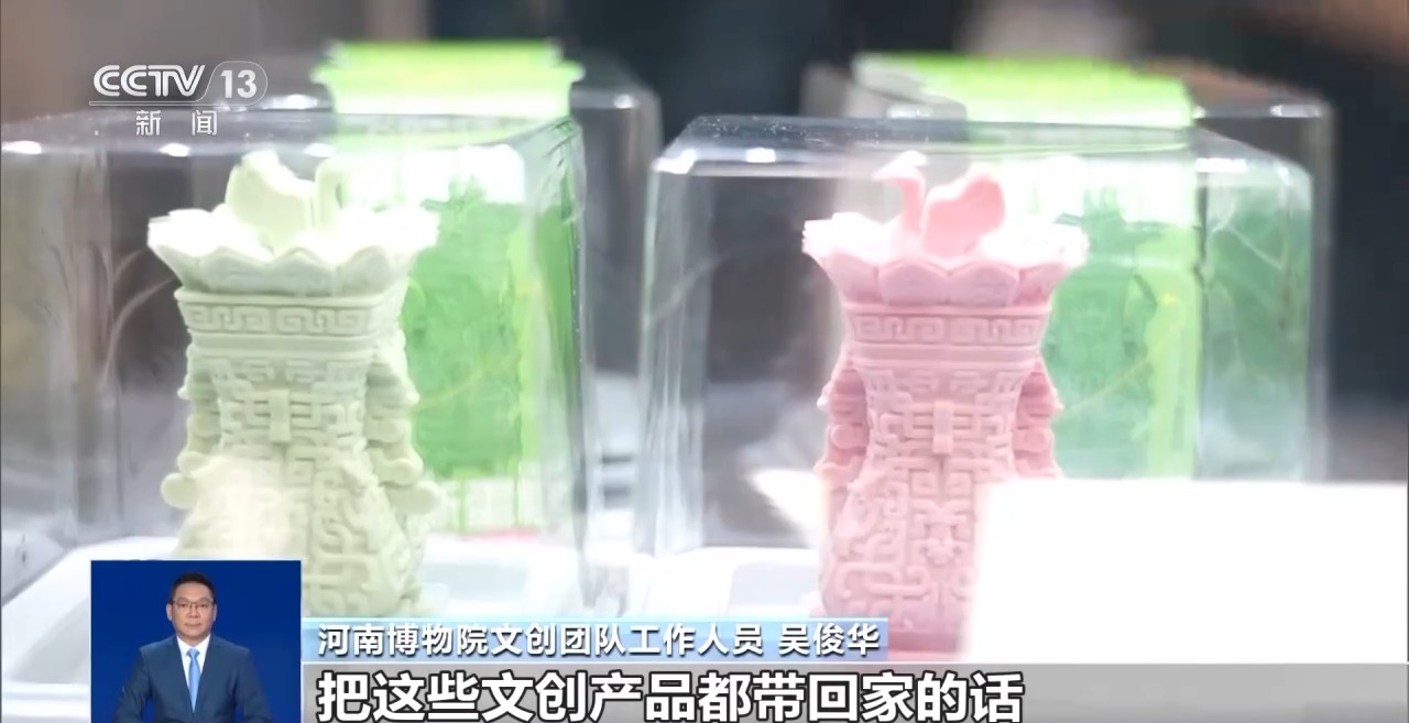 河南博物院文創(chuàng)團(tuán)隊工作人員 吳俊華:文化是文創(chuàng)的靈魂,創(chuàng)意是文創(chuàng)的生命,把這些文創(chuàng)產(chǎn)品都帶回家的話,等于說把一座小型的博物館帶回去了,其實這就是讓文物“活”起來。