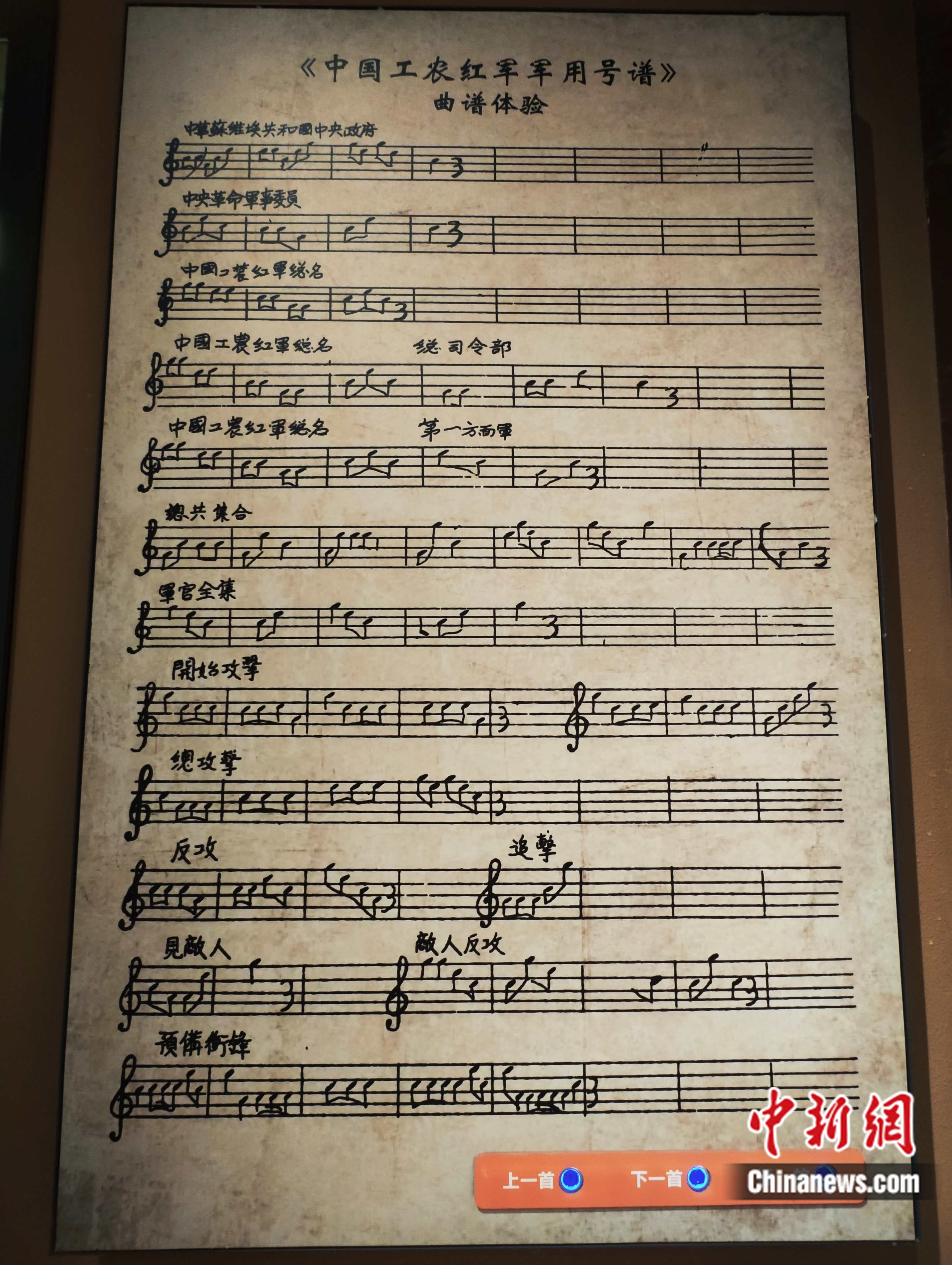 玻璃展柜中,那本用毛邊紙、黑油墨印制而成的《中國工農(nóng)紅軍軍用號(hào)譜》靜靜躺在那里,滿含歲月的痕跡。