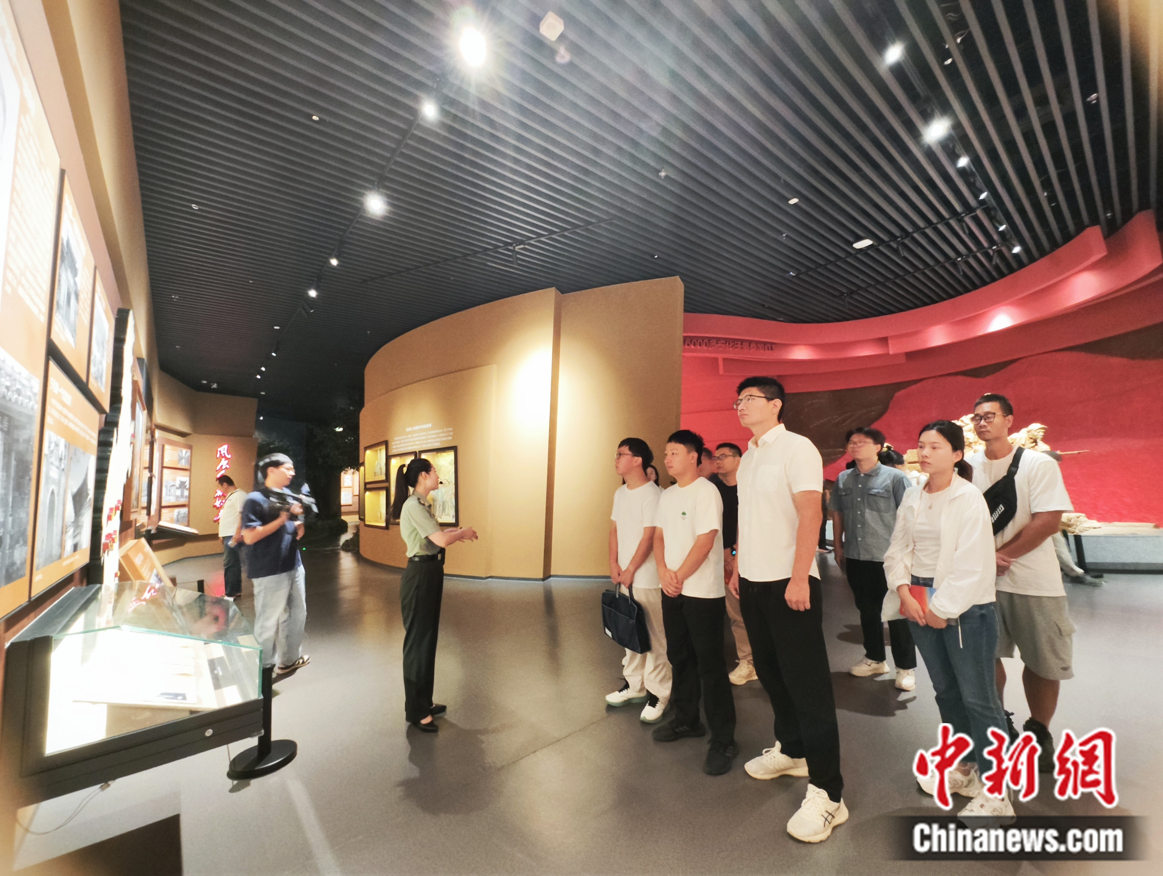 寧化縣長征精神教育基地內(nèi),講解員向采訪調(diào)研團(tuán)講述歷史。劉越 攝