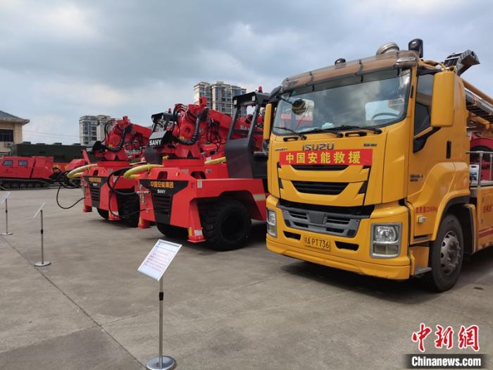 不僅如此,通訊指揮車、子母式龍吸水、水陸兩棲全地形多功能起重機(jī)……在這里,一排排重型裝備整齊列隊(duì)。