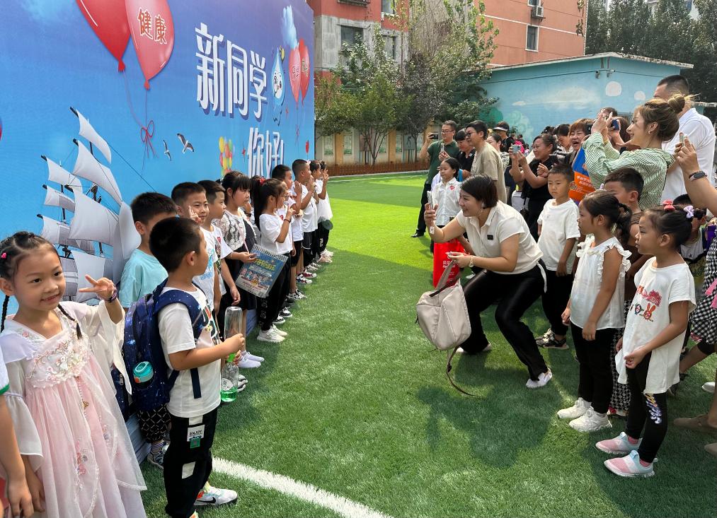 在沈陽(yáng)市珠江五校教育集團(tuán)怒江校區(qū),千余名小學(xué)一年級(jí)新生來(lái)校報(bào)到?!靶峦瑢W(xué)你好”的巨型展板下,孩子們展露笑臉、拍照留念,準(zhǔn)備邁入人生的嶄新階段。