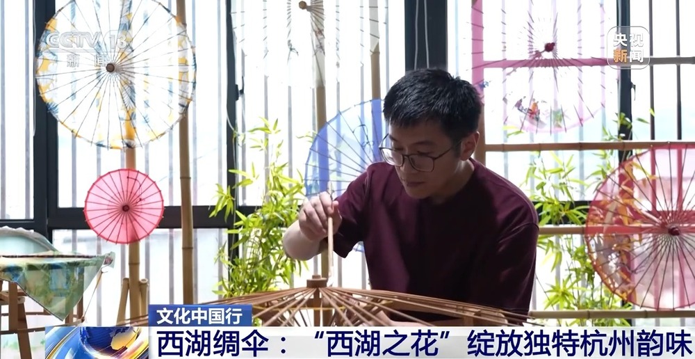 西湖綢傘的18道工序,蘊含了前人的智慧與創(chuàng)造。為了讓這項非遺技藝得到更好的傳承和發(fā)揚,宋志明的兒子宋超一心一意跟著父親學(xué)習(xí)做傘。從小耳濡目染,再加上專心學(xué)習(xí),現(xiàn)在宋超已經(jīng)是西湖綢傘技藝的區(qū)級代表性傳承人。暑假期間,國風(fēng)動畫電影《傘少女》中傘的設(shè)計便是以西湖綢傘為原型,非遺與動畫之間的奇妙碰撞,也讓宋超看到了西湖綢傘跨界傳播的更多可能性。