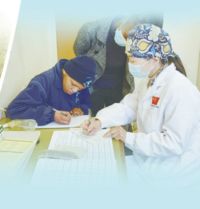 自1997年以來,中國湖北省承擔向萊索托王國派遣醫(yī)療隊的任務,醫(yī)療隊隊員在當?shù)卦\治了大量常見病、多發(fā)病,治愈了眾多疑難病癥,深受萊索托民眾歡迎與尊敬。圖為第十八批中國援萊索托醫(yī)療隊醫(yī)生王琦正在接診患者。