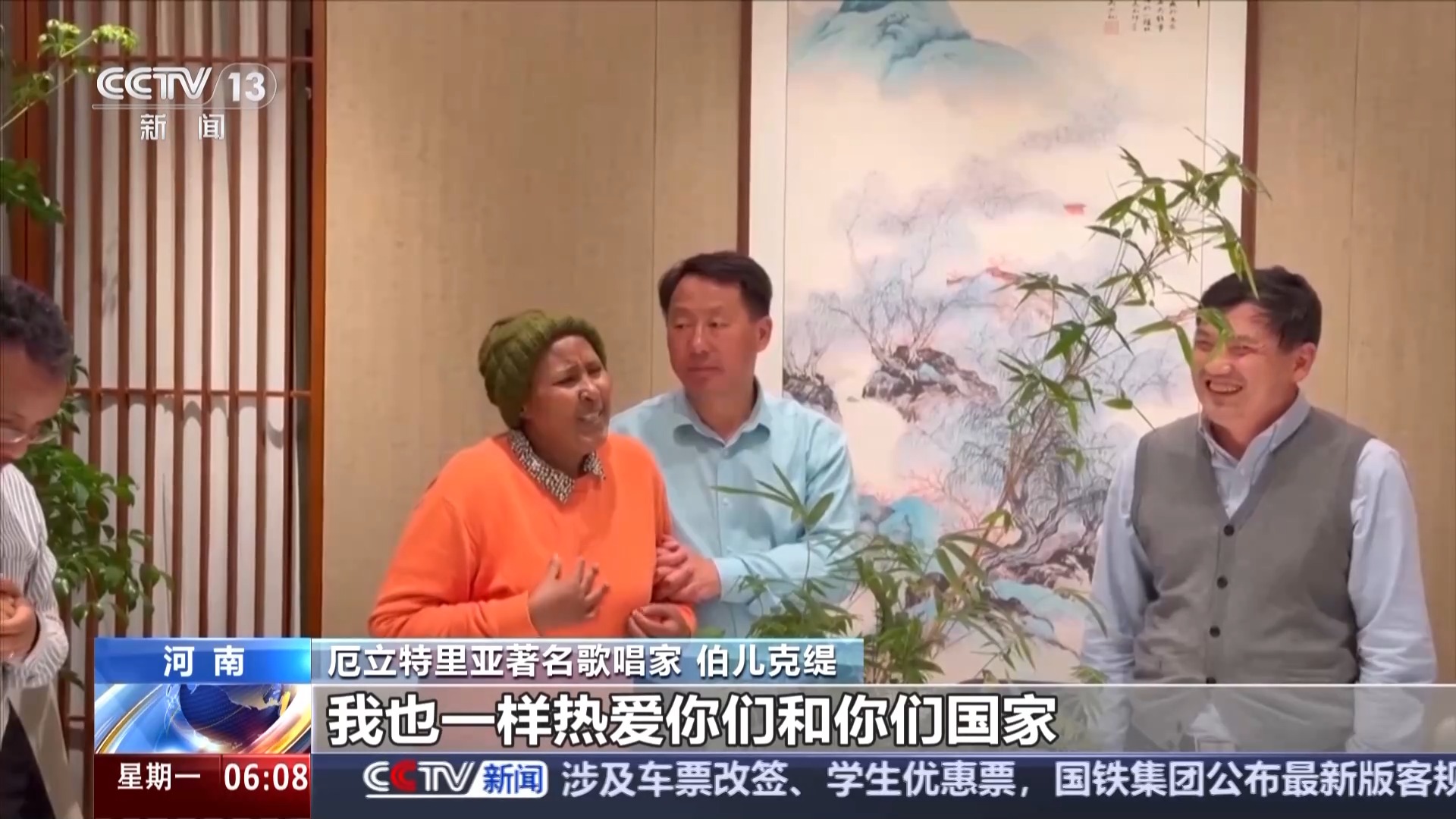厄立特里亞著名歌唱家 伯兒克緹:你們拯救了我的生命,給予了我新生命,我熱愛我的國(guó)家,我也一樣熱愛你們和你們國(guó)家。我也希望邀請(qǐng)你們?nèi)ノ业膰?guó)家做客,我愛你們。