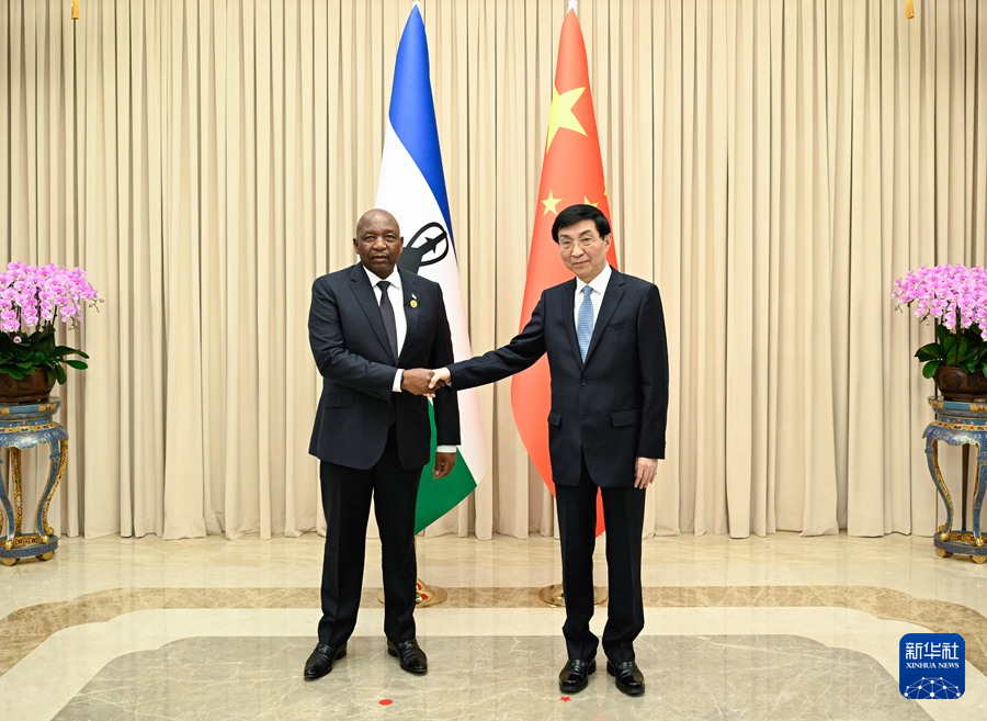 9月2日,全國政協(xié)主席王滬寧在北京會見來華出席中非合作論壇北京峰會的萊索托首相馬特凱恩。新華社記者 申宏 攝