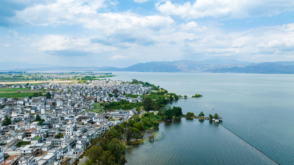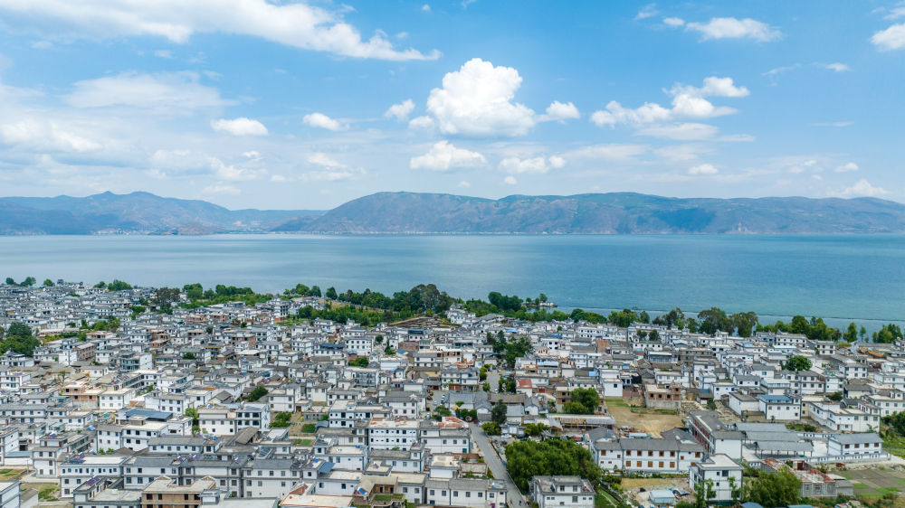云南省大理市古生村與洱海風光(無人機照片,5月6日攝)。新華社記者 胡超 攝