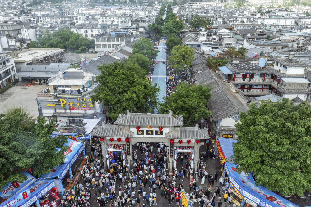 游客在大理古城參觀游玩(4月14日攝)。新華社記者 胡超 攝