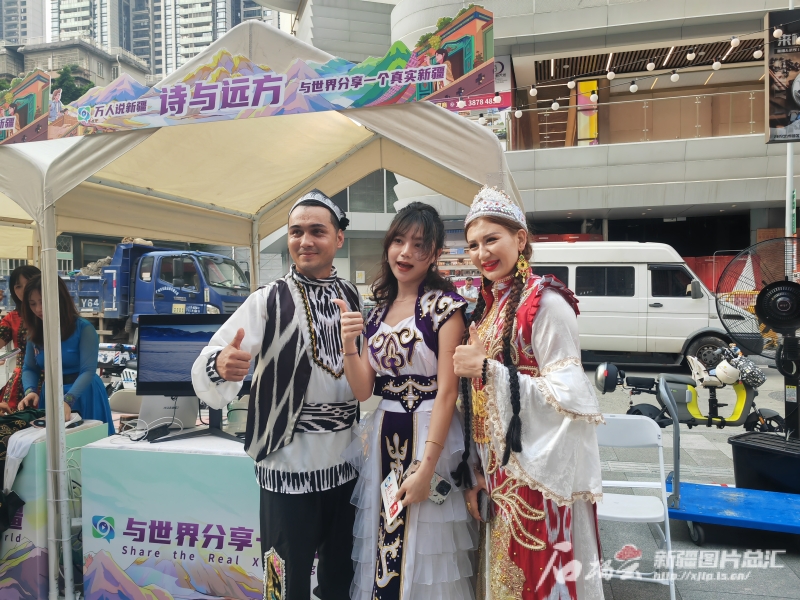 來自大連的王先生到廣州出差,途經(jīng)“萬人說新疆”活動現(xiàn)場,他停下了腳步?!斑@是第一次近距離了解新疆的非遺展品,第一次吃到正宗的新疆美食,我好喜歡,希望‘萬人說新疆’活動可以走進我的家鄉(xiāng)大連。”王先生說,一直覺得新疆很遙遠(yuǎn),這一次短暫的接觸新疆人文和美景后,感覺詩與遠(yuǎn)方魅力無限,再遠(yuǎn)也值得去一趟。