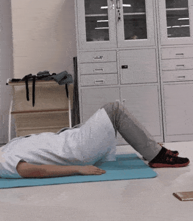 平躺在墊子上,雙腿分開(kāi),與肩同寬,雙手置于身體兩側(cè)。緩慢向上做抬臀動(dòng)作,停留一會(huì)兒,然后恢復(fù)至初始動(dòng)作。此為一個(gè)完整動(dòng)作。8~12次/組,做3組。