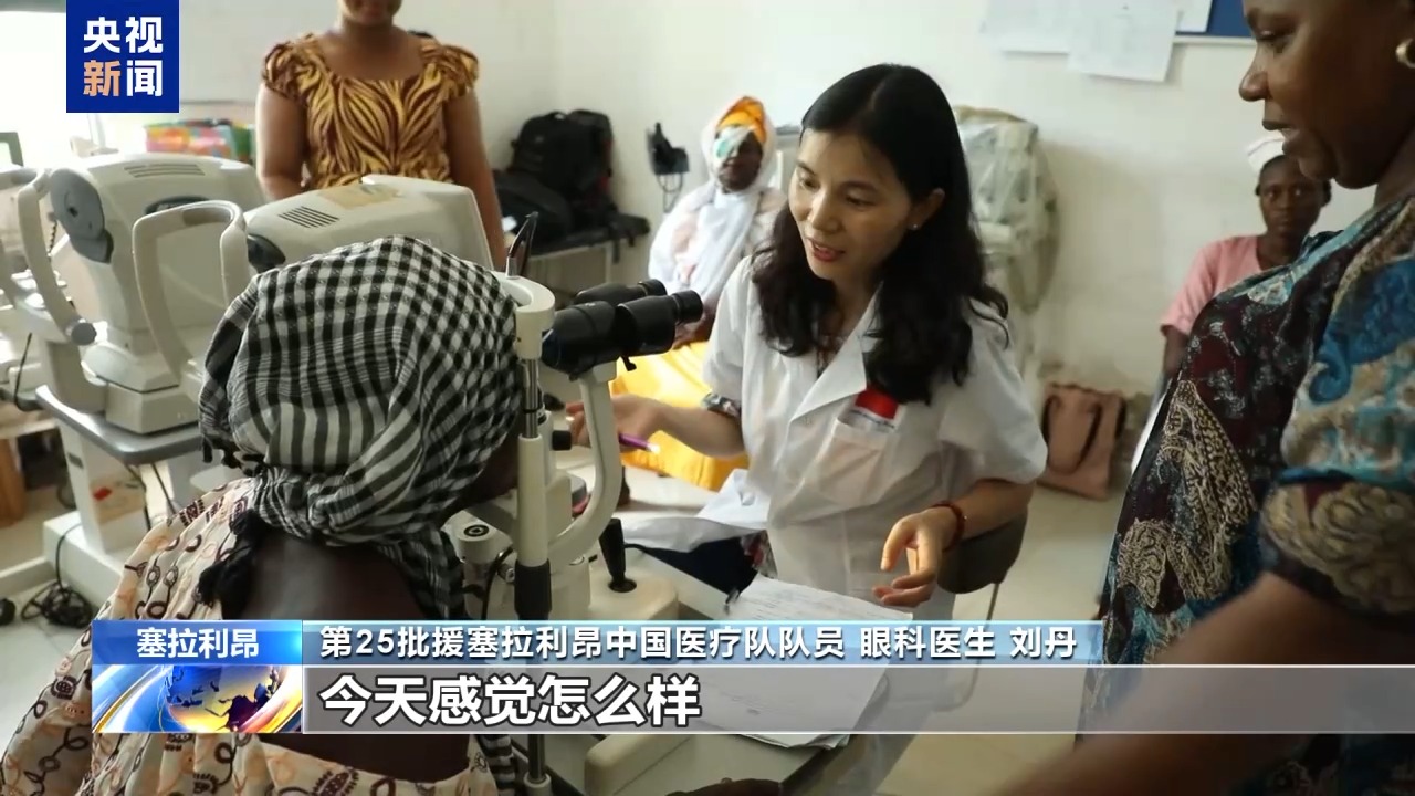 第25批援塞拉利昂中國(guó)醫(yī)療隊(duì)隊(duì)員 眼科醫(yī)生 劉丹:今天感覺(jué)怎么樣?好了?好多了?讓我檢查一下你的眼睛……手術(shù)效果非常好,過(guò)幾天就會(huì)好轉(zhuǎn)了。