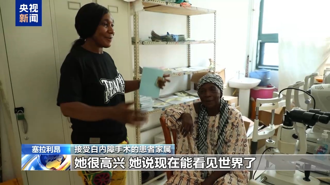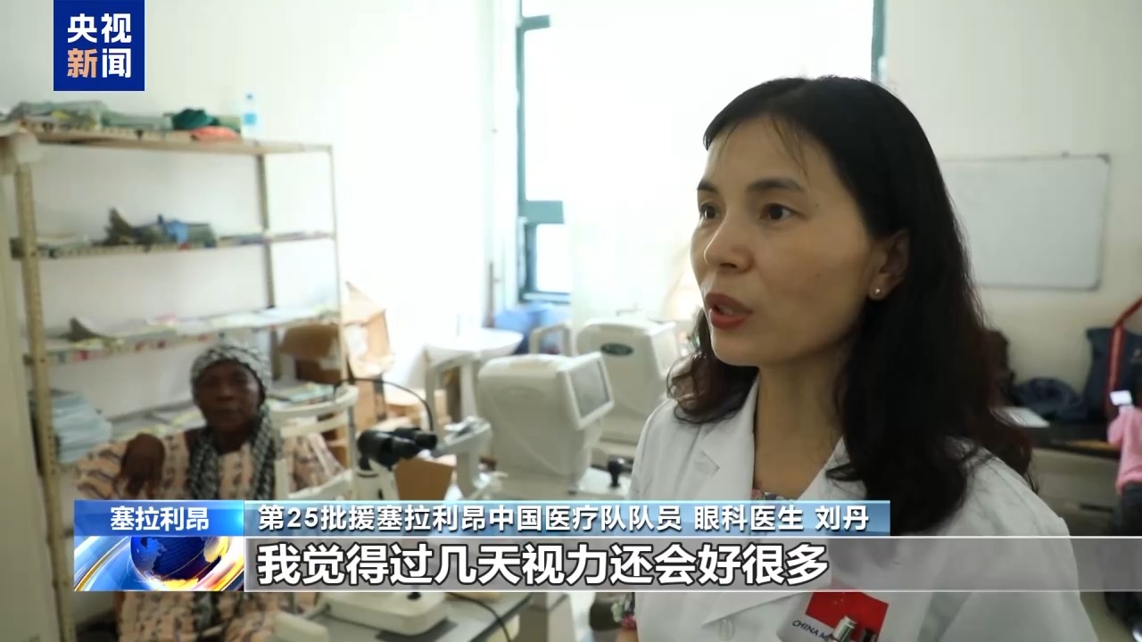 第25批援塞拉利昂中國(guó)醫(yī)療隊(duì)隊(duì)員 眼科醫(yī)生 劉丹:這是昨天一個(gè)(接受)白內(nèi)障手術(shù)的病人,她術(shù)前的視力只能看見(jiàn)眼前的手在動(dòng),手指頭都分辨不太清楚。今天一打開(kāi)(紗布)視力是0.3,我覺(jué)得過(guò)幾天視力還會(huì)好很多。