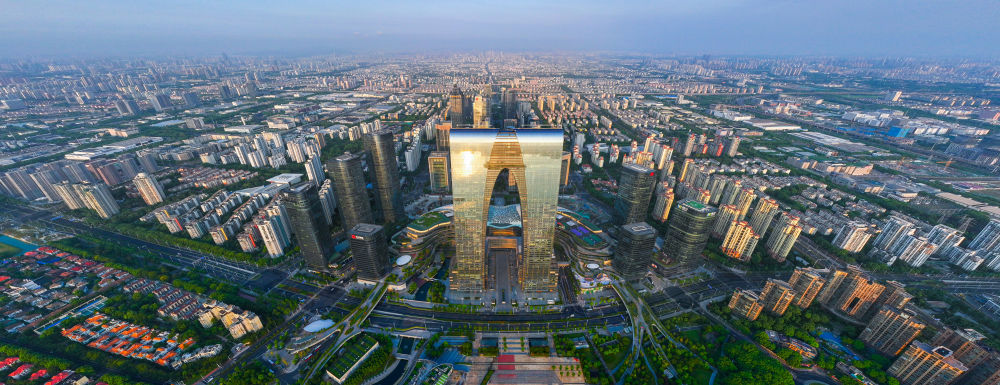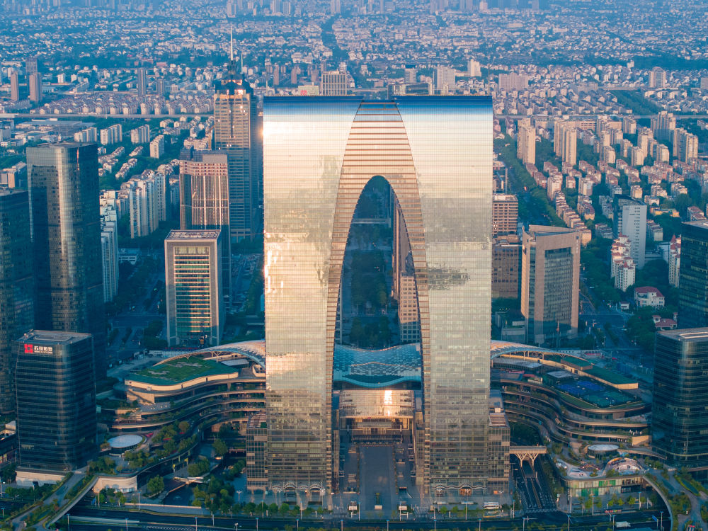 這是8月30日無(wú)人機(jī)拍攝的蘇州工業(yè)園區(qū)東方之門。