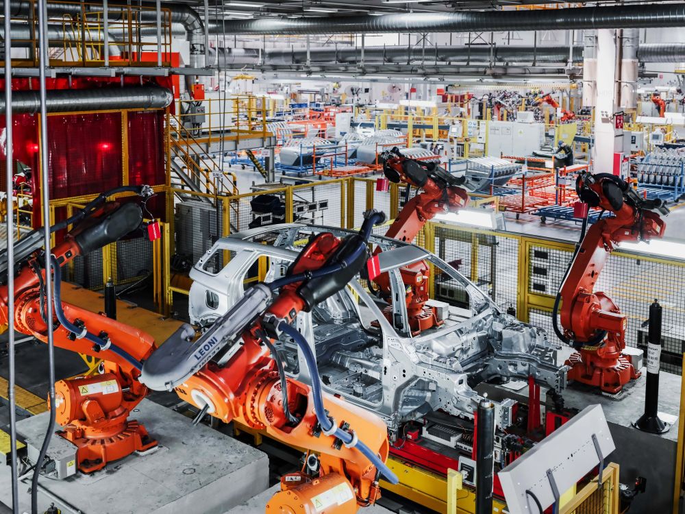 這是6月13日拍攝的奇瑞捷豹路虎汽車有限公司常熟生產(chǎn)基地生產(chǎn)線。