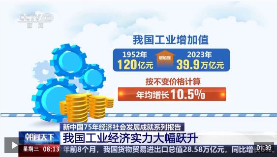 國家統(tǒng)計局昨天(10日)發(fā)布的新中國75年經(jīng)濟(jì)社會發(fā)展成就系列報告顯示,新中國成立75年以來,我國工業(yè)經(jīng)濟(jì)實(shí)現(xiàn)了規(guī)模總量的跨越式增長和發(fā)展質(zhì)量的顯著提升,由農(nóng)業(yè)國成長為世界第一制造業(yè)大國。
